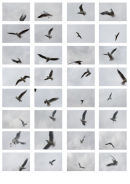 I wanted to convey the ideas of taking ownership of transience in line with the human desire to possess things- taking ownership firstly by photographing the clouds/ripples/flight in the first place, objectifying them, then exerting further control by placing them into a formal collection- making the intangible tangible. I feel that the contrast of the fleeting formless things I photographed and the desire to live forever via collecting made for an intriguing paradox, as the clouds, ripples and the act of flight illustrate brevity if anything- so putting them into a formal collection alludes to a fruitless, incompletable task, a sort of hopelessness.